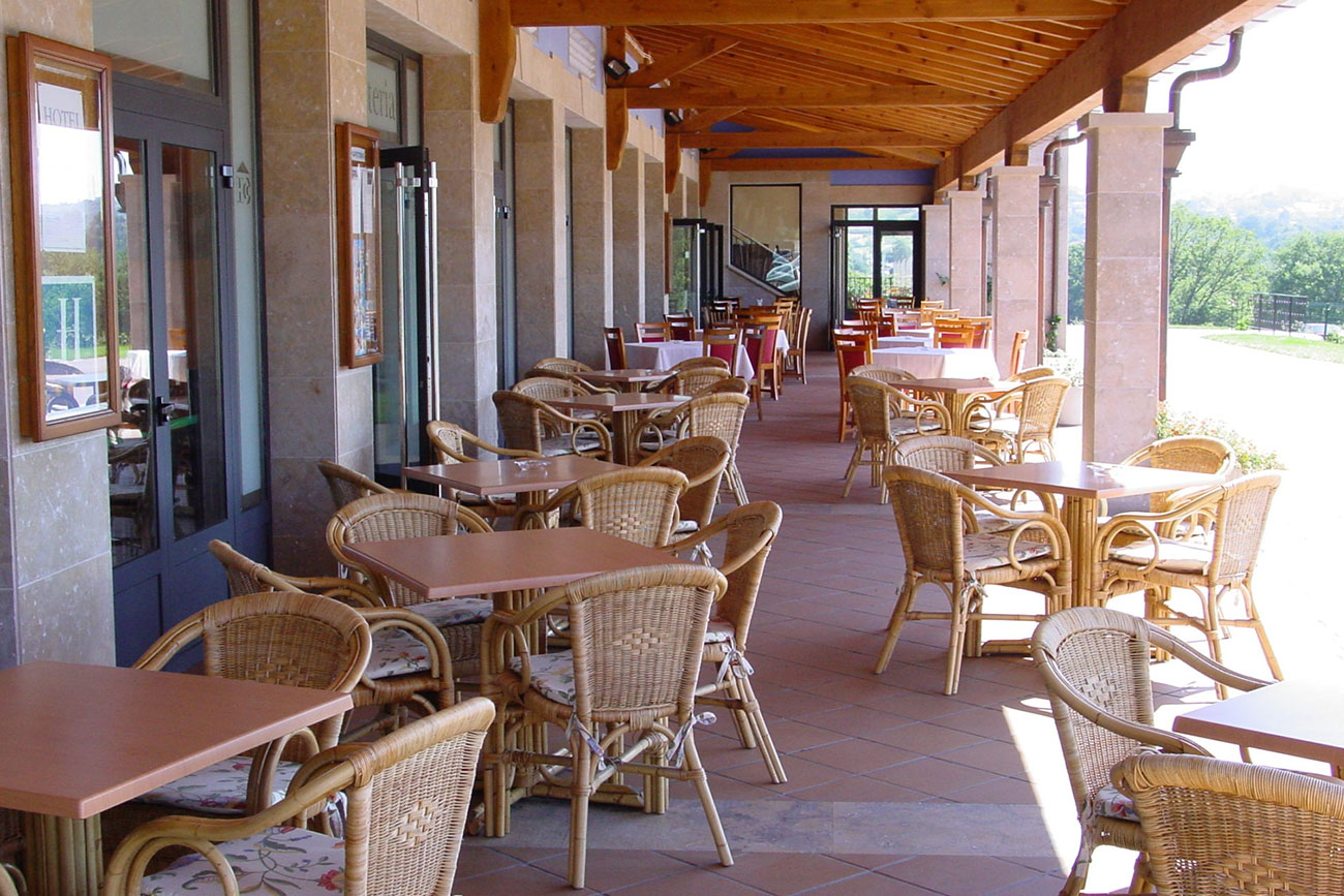 Nuestro Hotel Cristina tiene hermosos balcones, terrazas y un amplio porche estratégicamente situado en el centro de una cuidada finca de treinta mil metros cuadrados de prados y espacios ajardinados totalmente delimitada por robles y castaños bicentenarios, que nos aíslan de los ruidos creando un auténtico clima de calma, paz y tranquilidad.